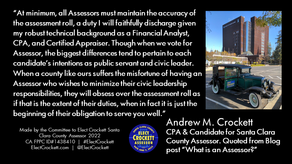 As Assessor Andrew Crockett, my goals for the Santa Clara County Assessor’s Office are: